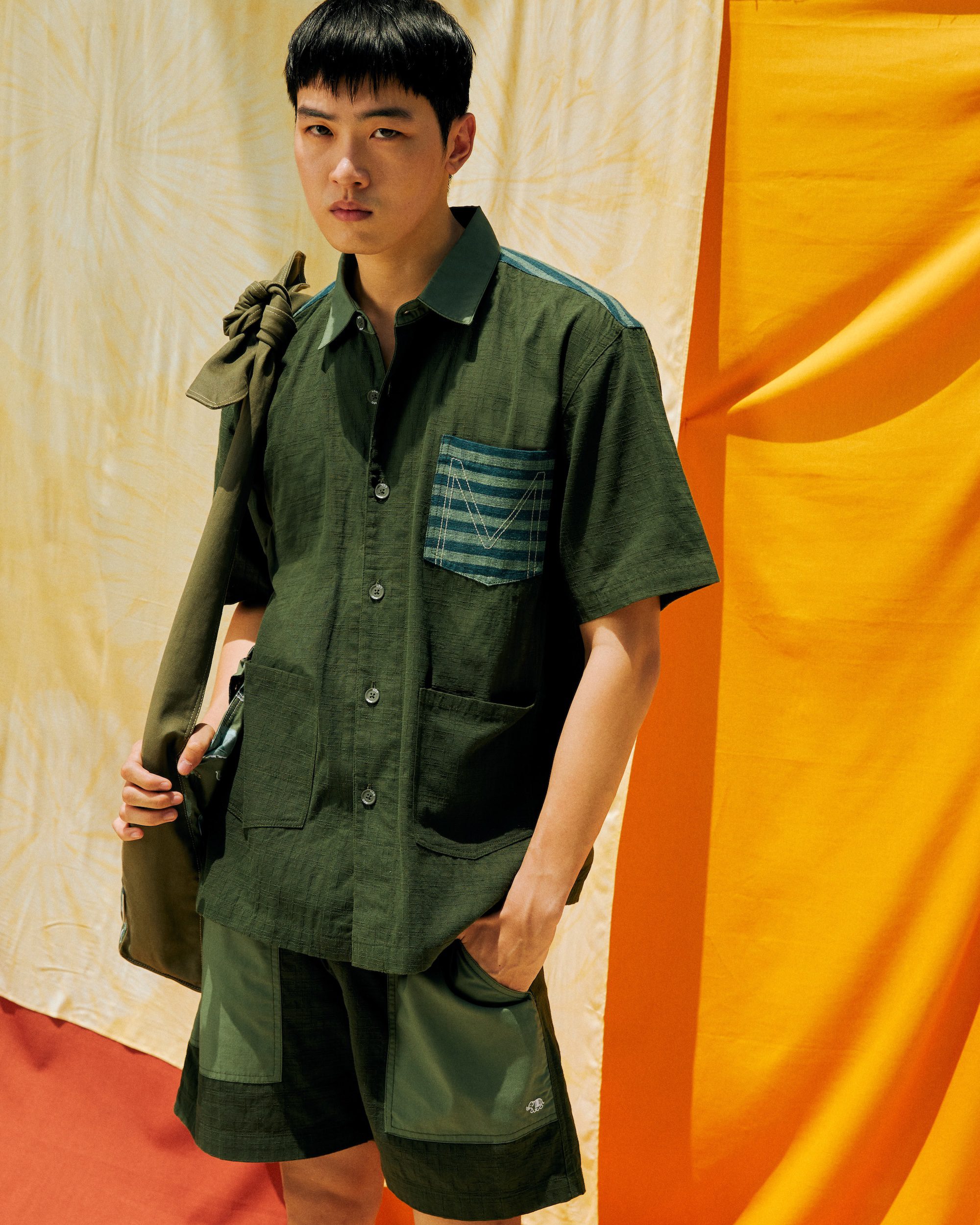 This special collection proudly supports Thai craftsmanship rooted in environmentally friendly practices. All techniques are derived from natural processes, such as Hand-spun Cotton and natural tie-dyeing and the use of zero-waste fabrics. Leftover woven fabrics are repurposed into detailed accents seen throughout the collection, which features easy-to-wear items like Hawaiian shirts, shorts, and jackets. The collection also blends Thai identity with the aesthetics of both good goods and MOO Bangkok through a signature paisley elephant print, which is the highlight item of this collection. Along with tie-dye T-shirts with playful color drops, capturing the vibrant spirit of Thailand.