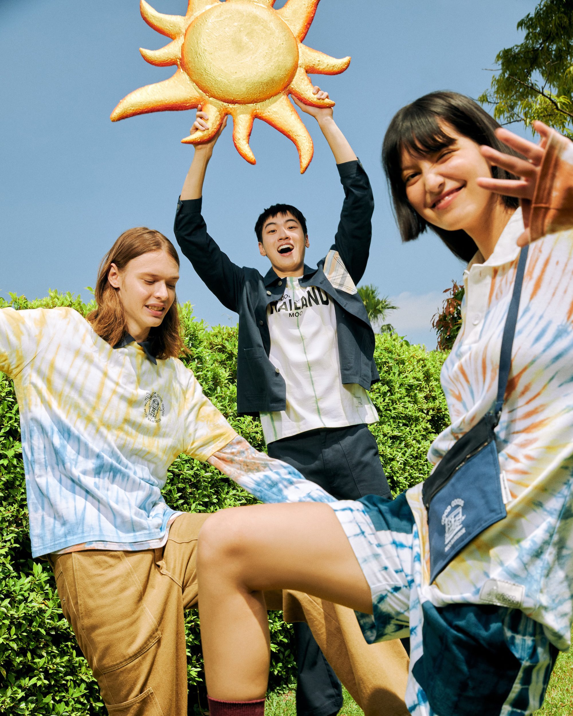 MOO Bangkok, a brand of men’s clothing and lifestyle led by Moo-Polpat Asavaprapha, designer and founder of Asava Group. Launches the good goods collaborated with MOO Bangkok by Polpat (Moo) Asavaprapha to design a special collection inspired by local wisdom from Sakon Nakhon, Thailand. The collection is created in collaboration with 3 communities: Ban Kut Chik Indigo-dyed fabric Community, Khlong Withi Community Enterprise, and BAN-NA-NGAM Weaving Group. Their craftsmanship is reinterpreted through the urban style ready-to-wear of MOO Bangkok under the concept “Eternal Sunshine” which reflects brightness, smiles, and positive energy found in the simple joys of everyday life. The collection conveys the essence of Thai identity through clothing, creating a warm and heartfelt atmosphere.