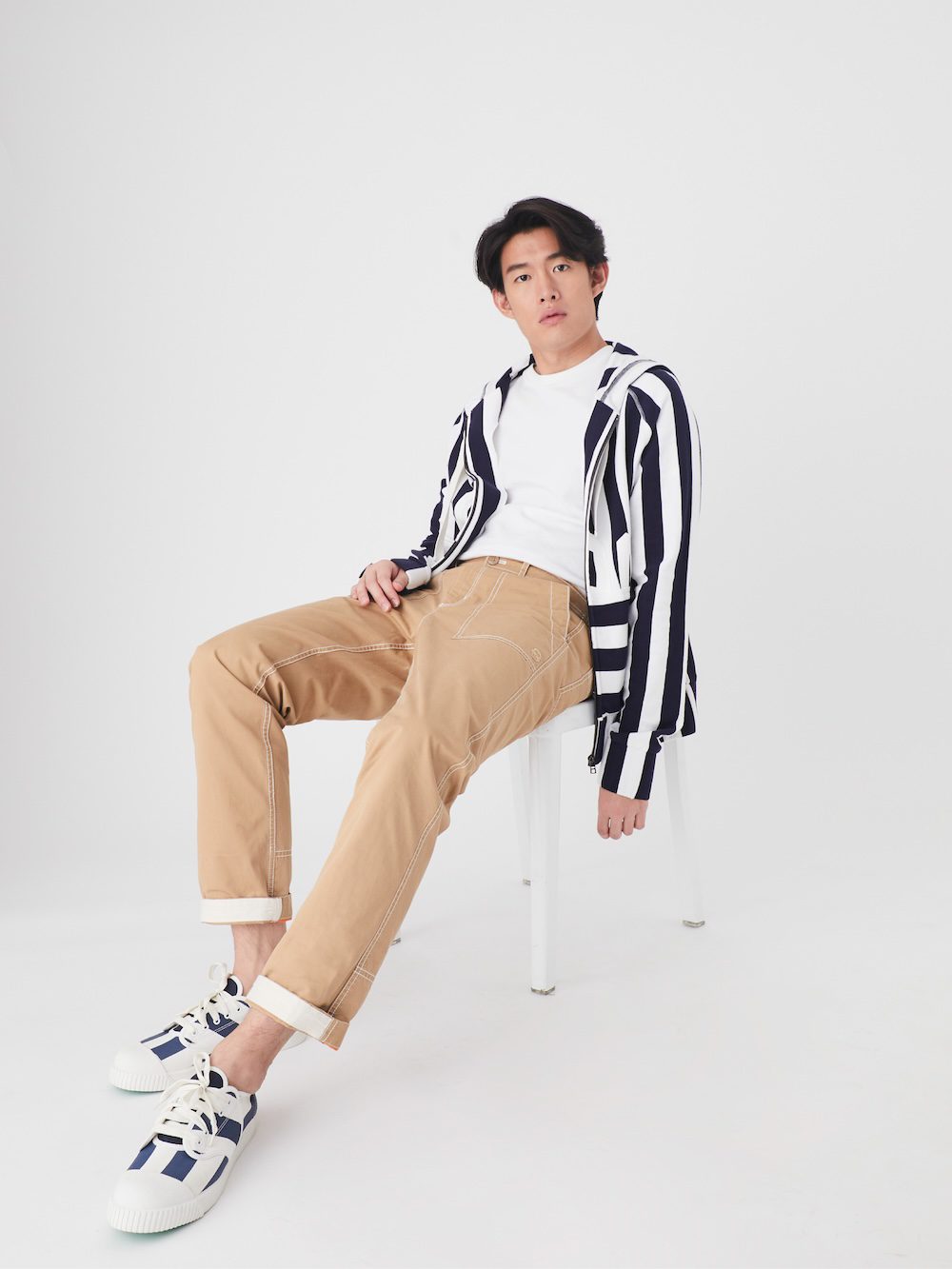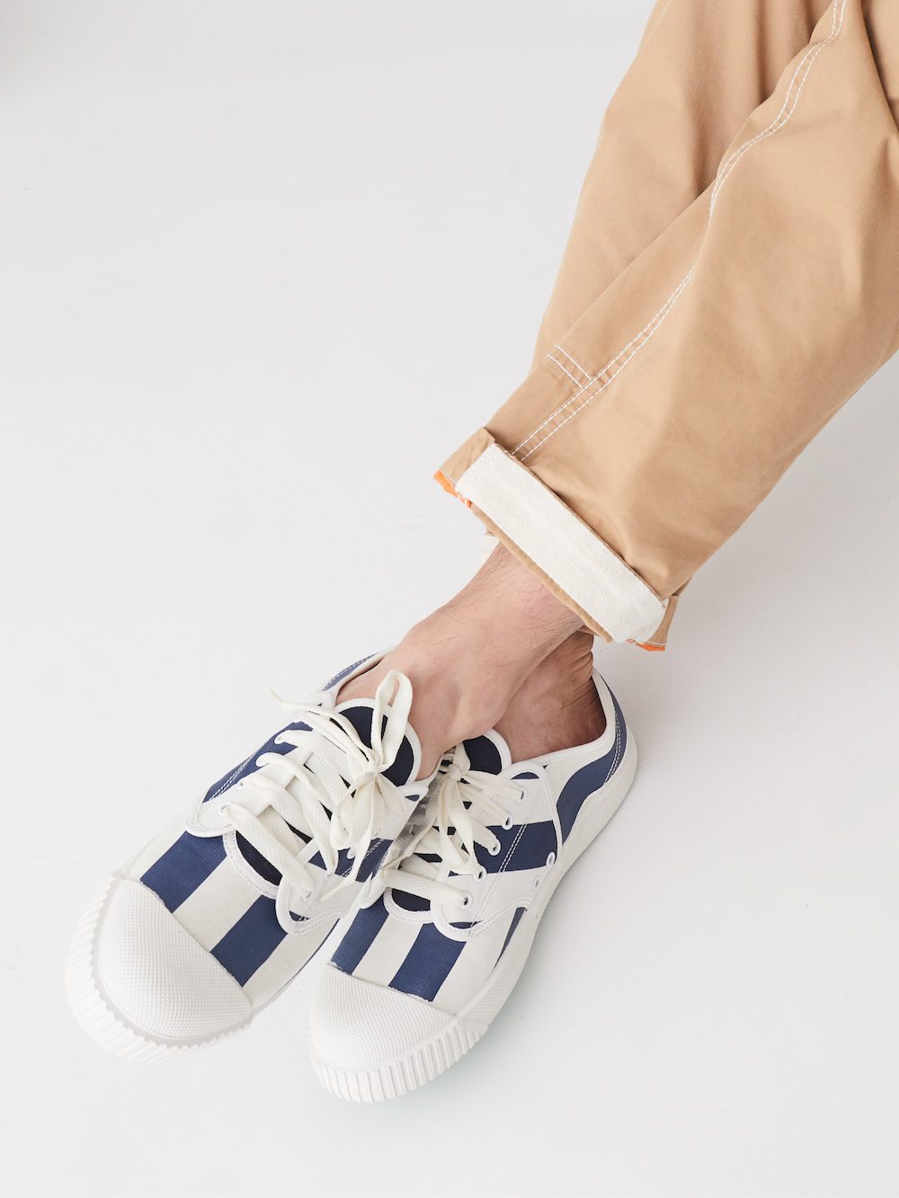 Featuring MOO Bangkok’s signature colors—navy, white, and multicolor (blue, red, white) along with bold stripe patterns. The design blends contemporary style with Nanyang’s timeless elements, including the remarkable green rubber sole and comfortable, high-quality materials.