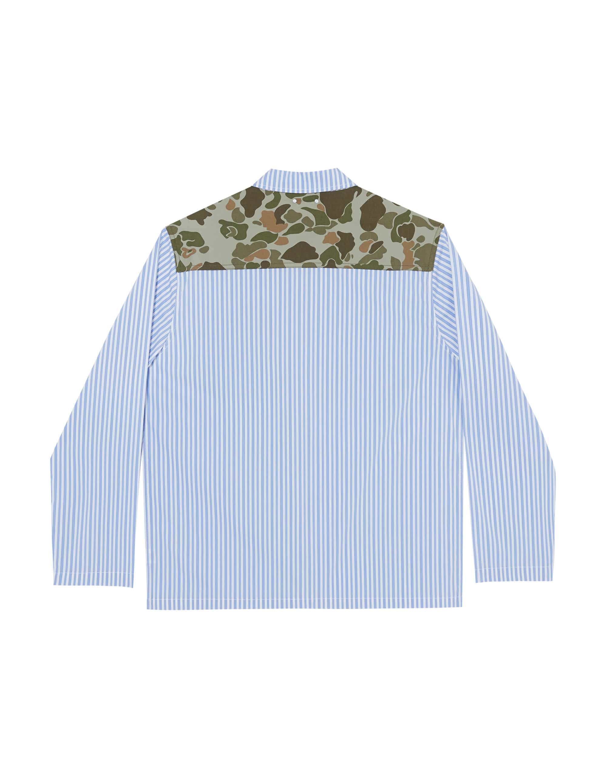 Casual Blue Striped Shirt with Camo Patch