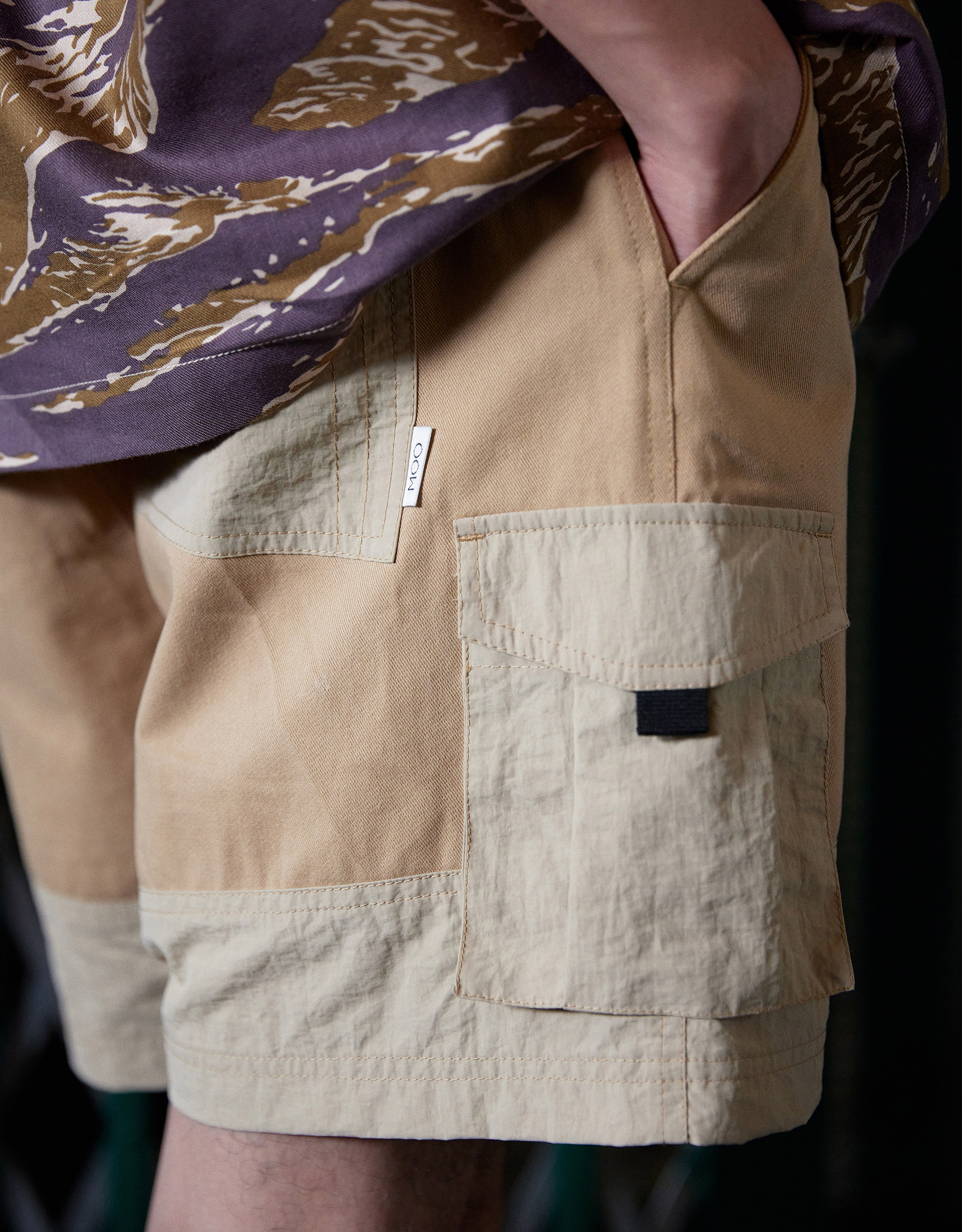 - Attached Flap Pockets Nylon Patchwork Design at Front and Back.