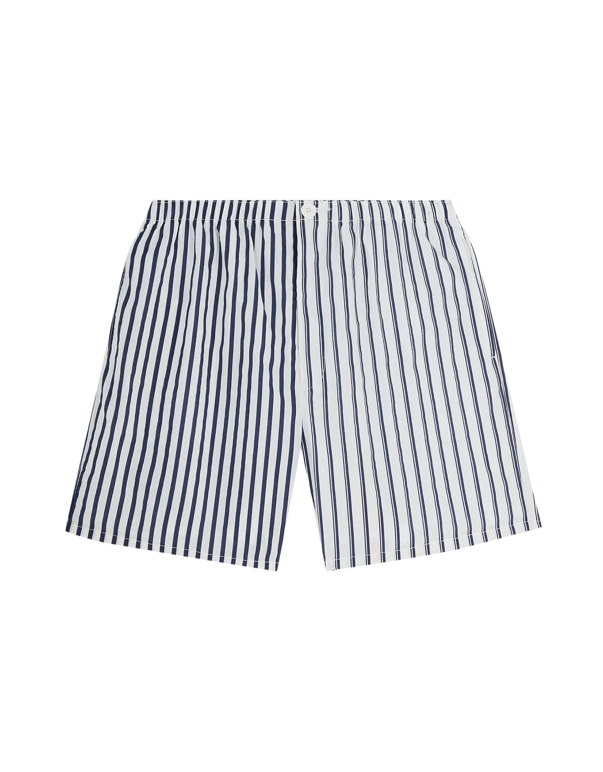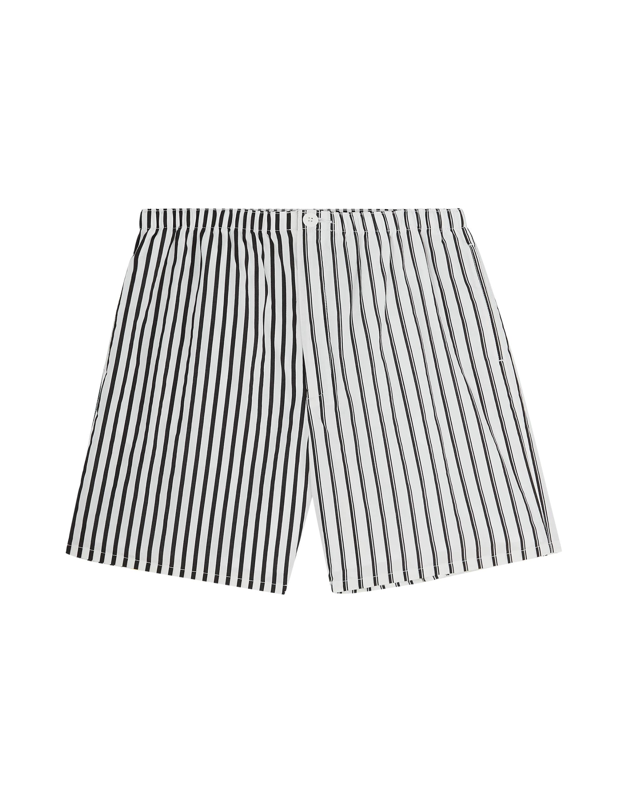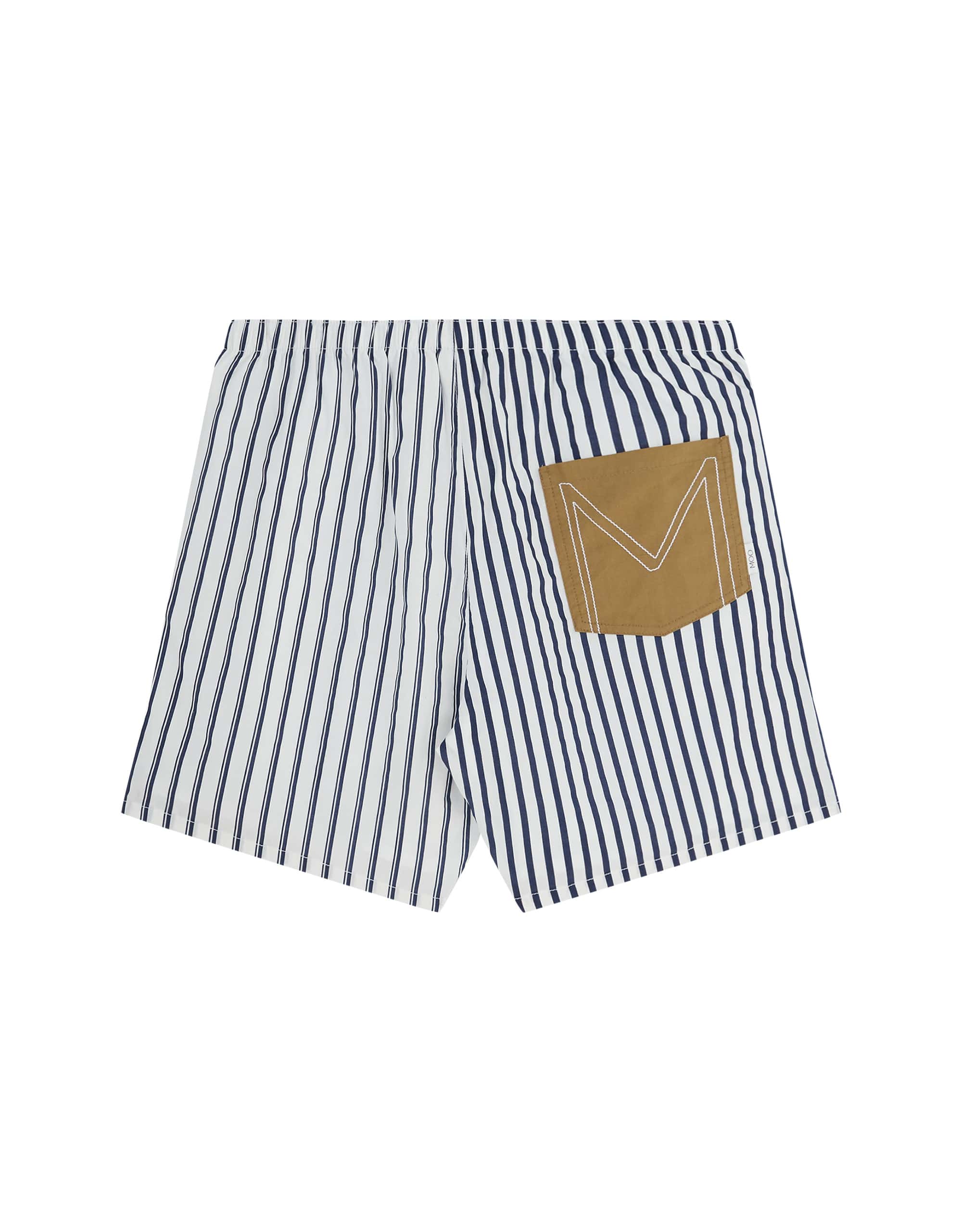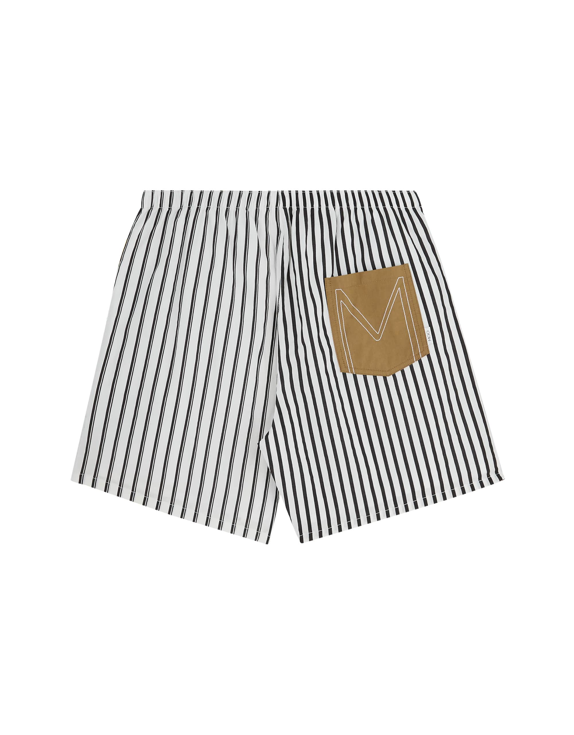 Moo : Contrast Striped Cotton Shorts. Featuring Drawstring Wasitband and Two-side Pockers.