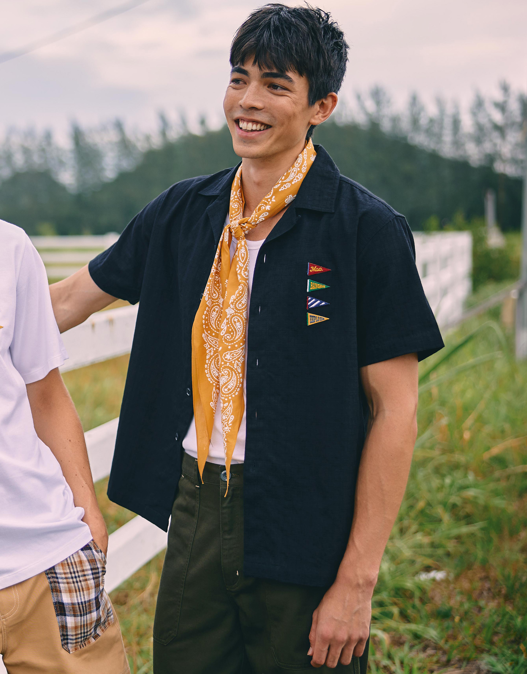 Features with Embroidered Ivy League details at Chest and Hems.