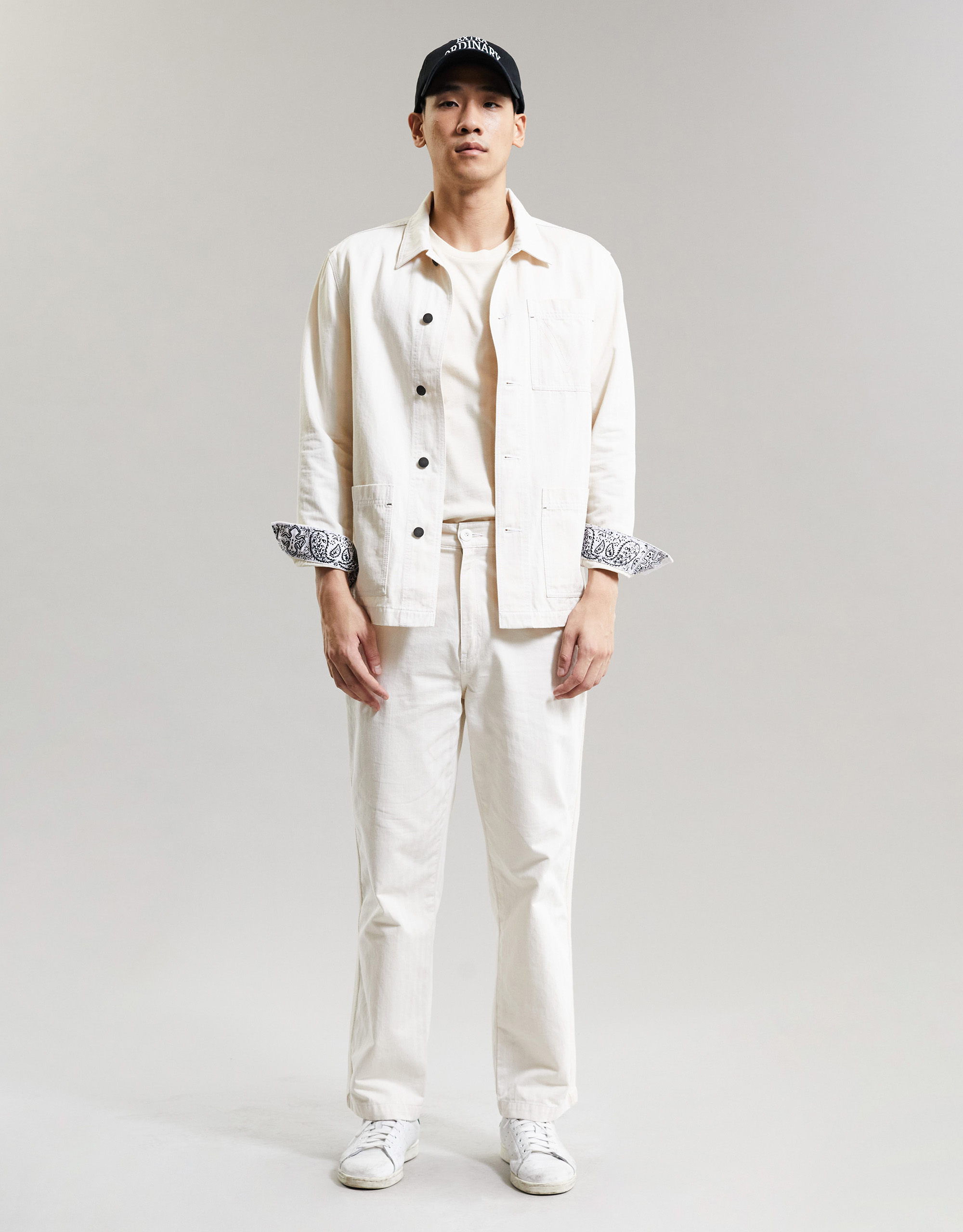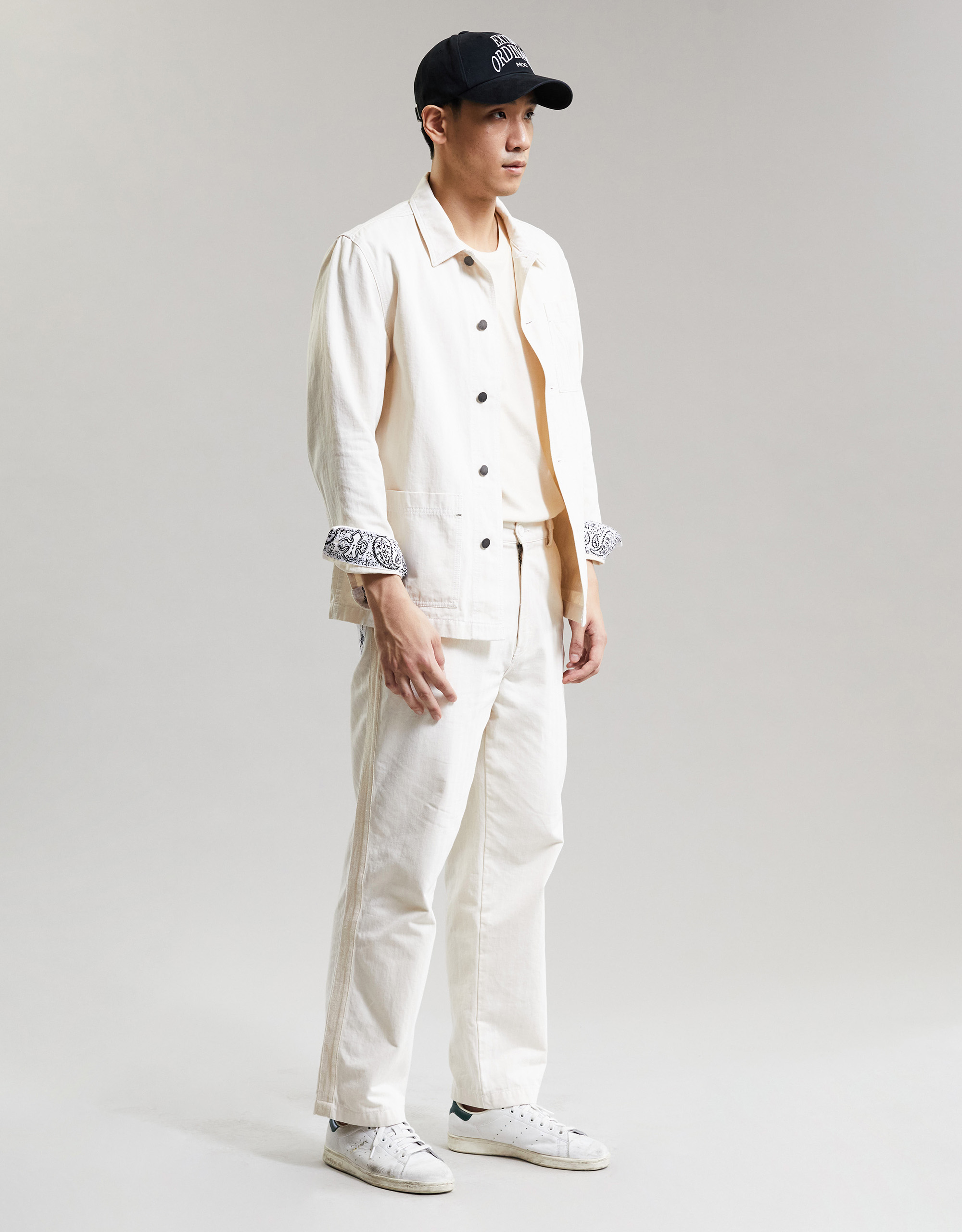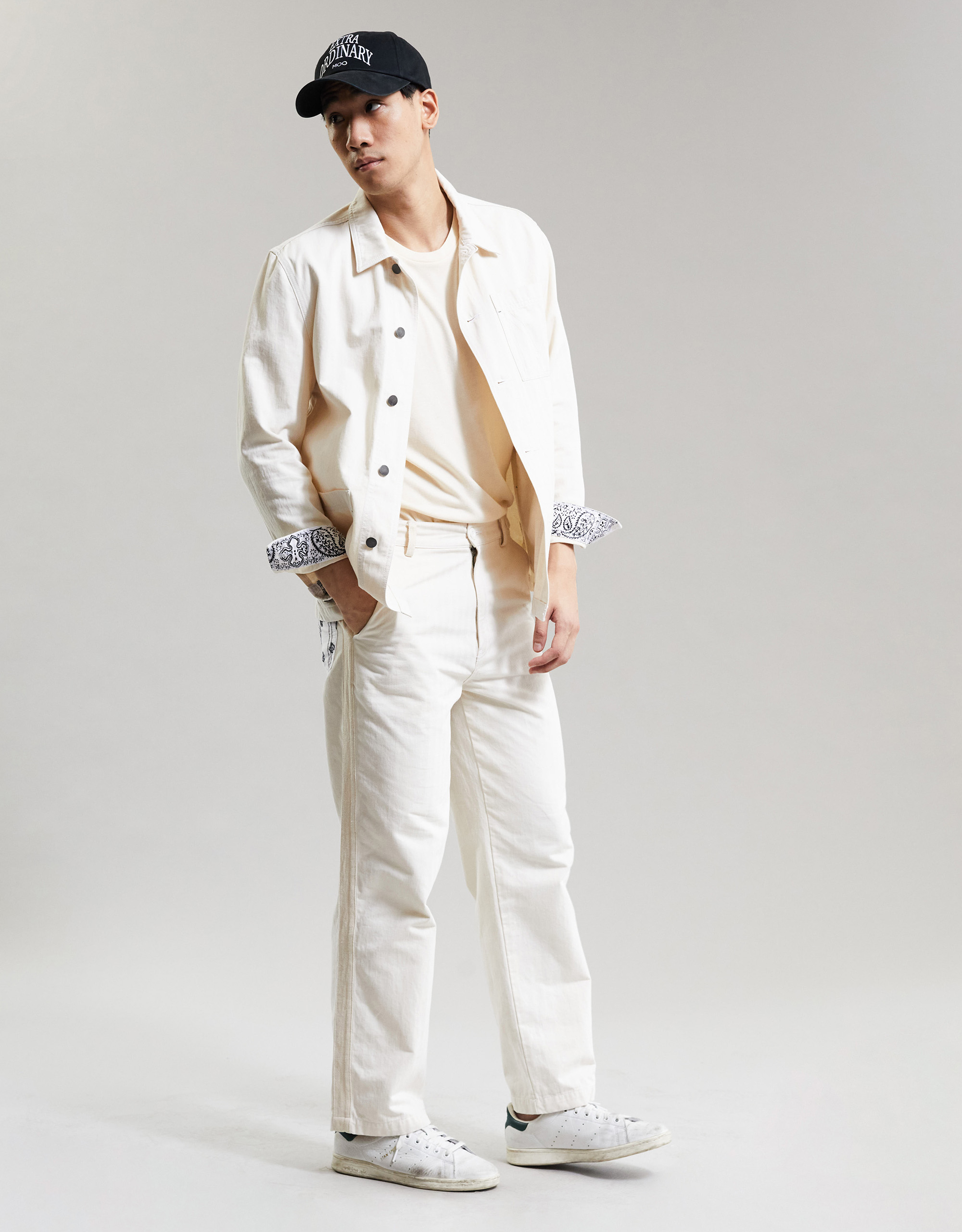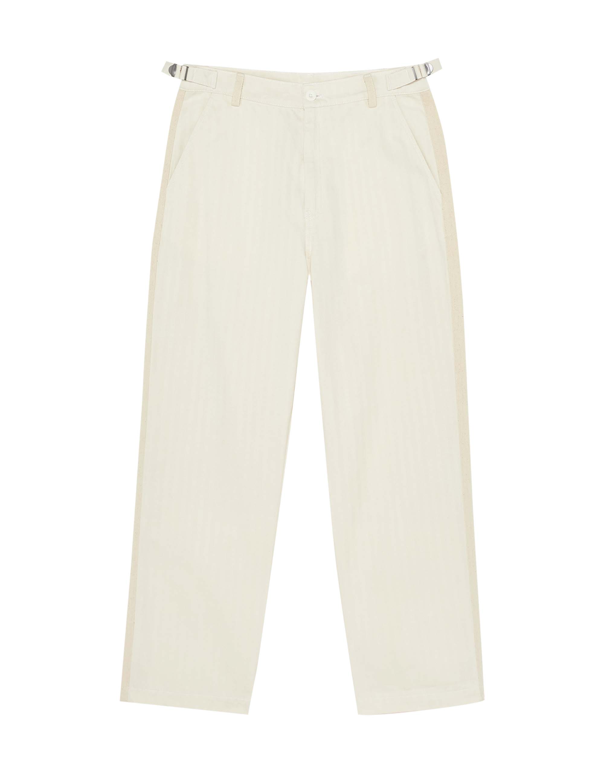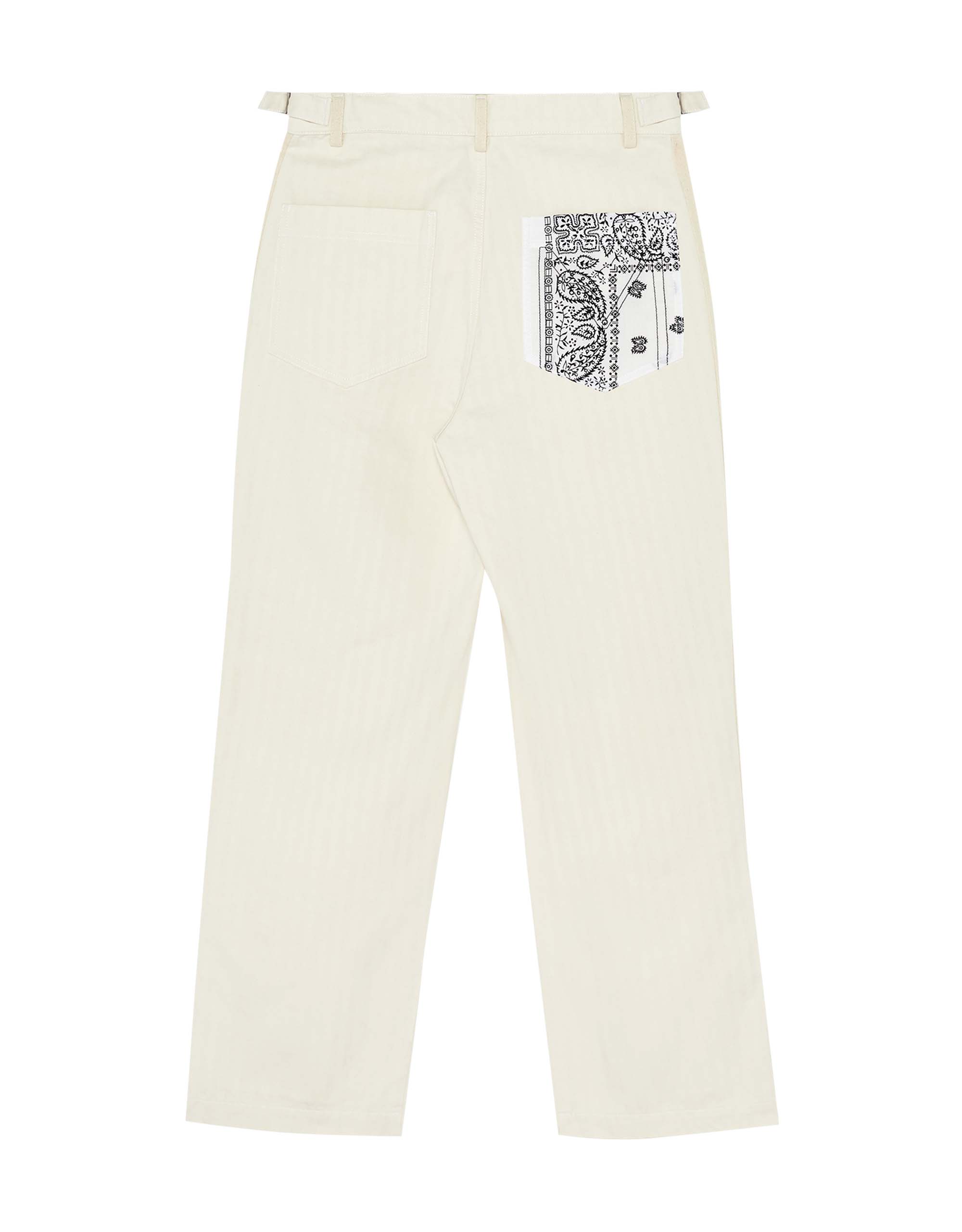 Moo : Garment washed Straight-leg Pants. Featuring side and paisley patch pockets at the Back. Tape at Outter-leg Seams. Waist Adjuster Buckle. Button-fly.