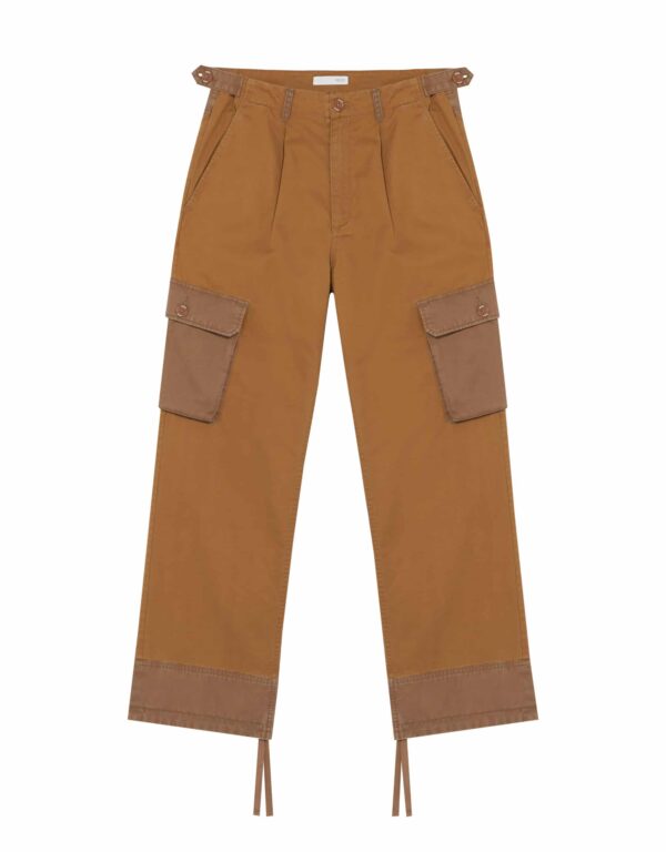 - Straight-leg Cargo Pants with Contrast Hems and Side Pockets Styling.