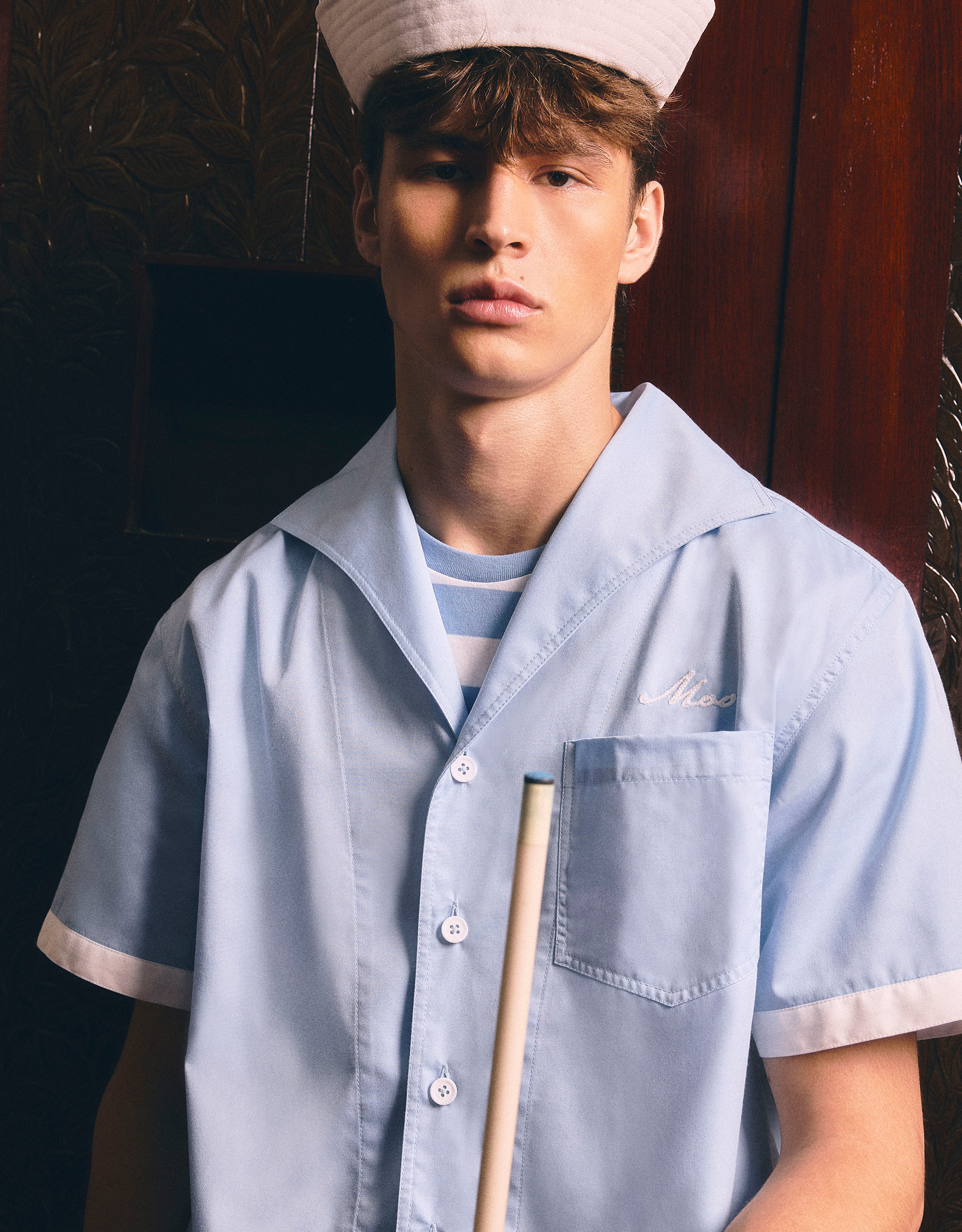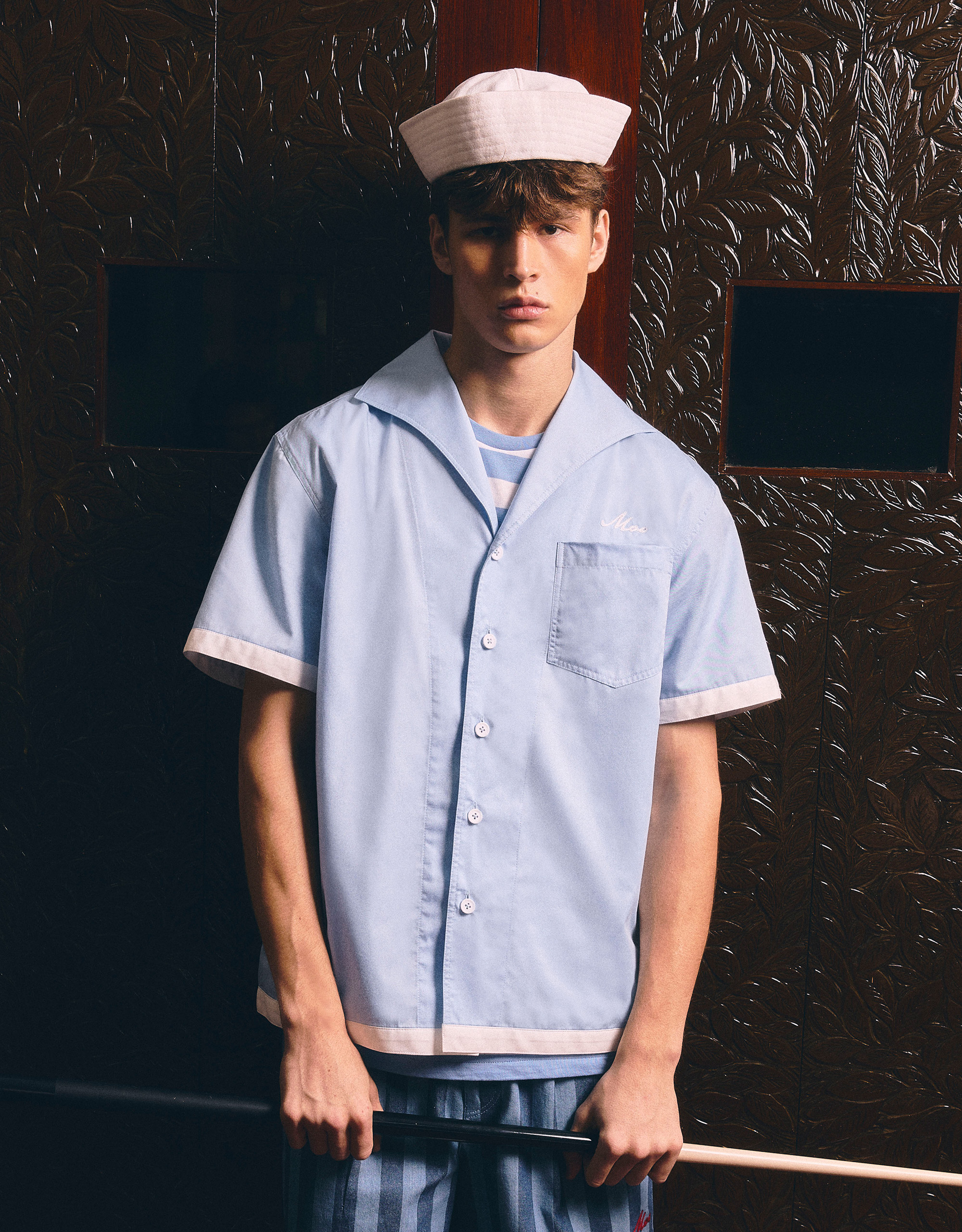 Embroidered “MOO” Chain at Chest.