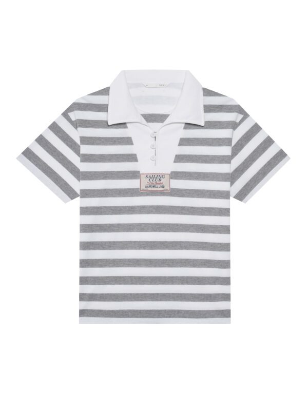 Striped Cotton Polo Shirt with Sailor Smock Collar.