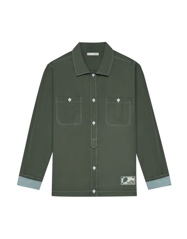 Features with Embroidered Tennis Arm Patch Design at Hems.