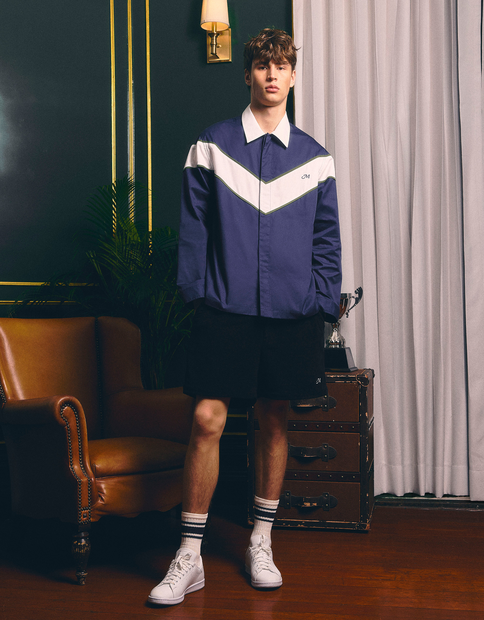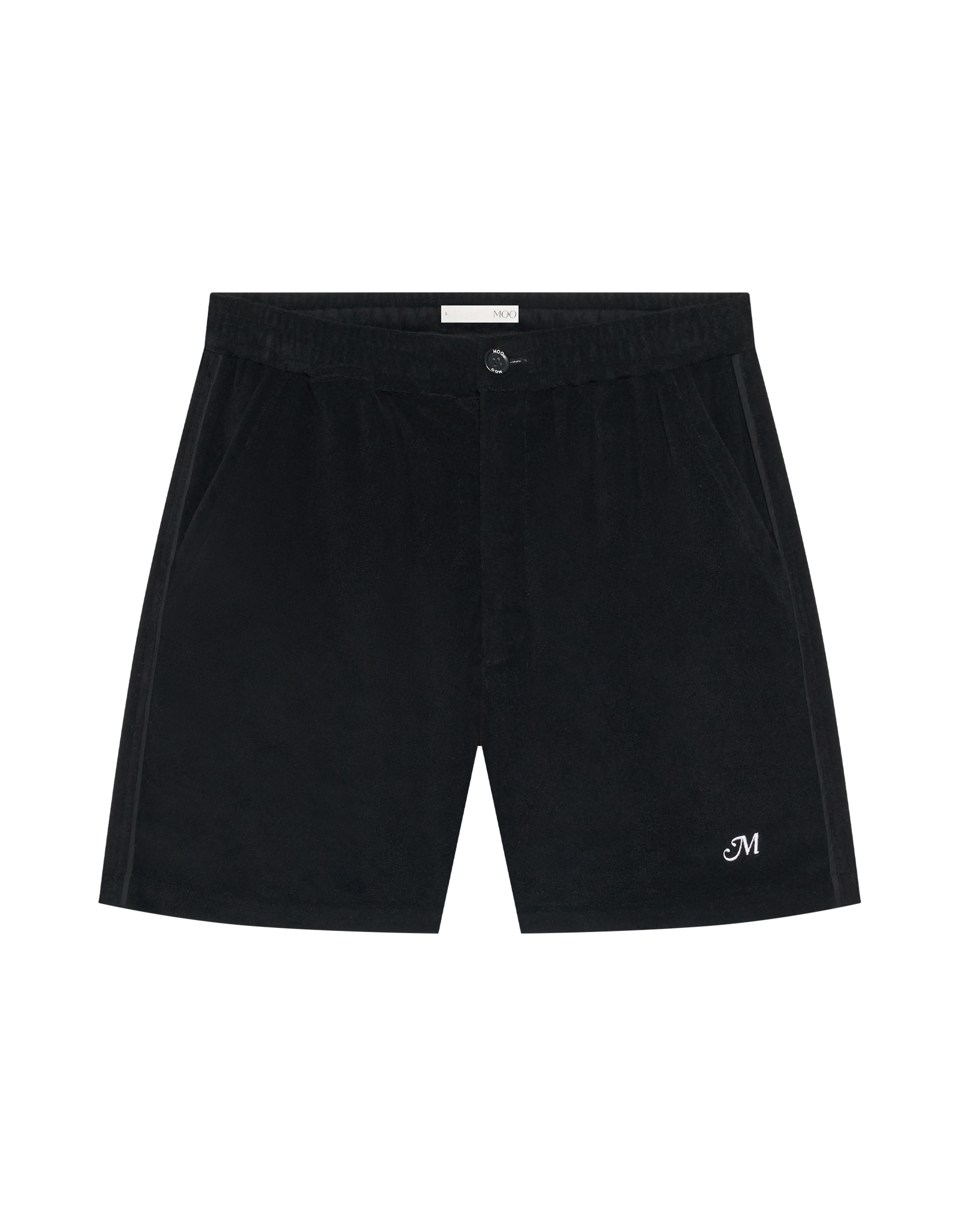 Embroidered “M” at Front. Elastic Waistband.